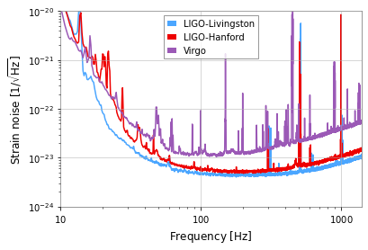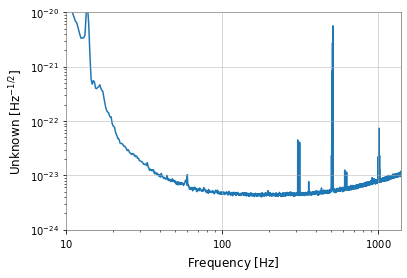 #pylab.ylabel('$Strain^2 / Hz$')