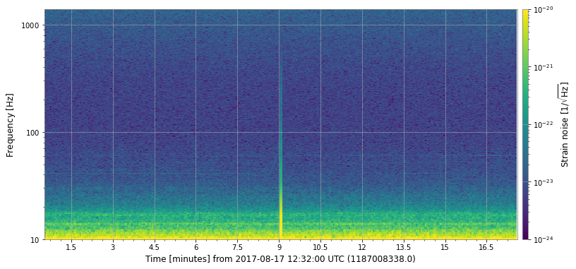 # Plot a spectrogram (or q-transform) of the data, and try to identify the signal